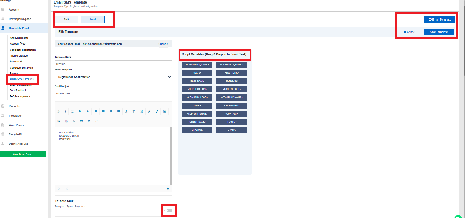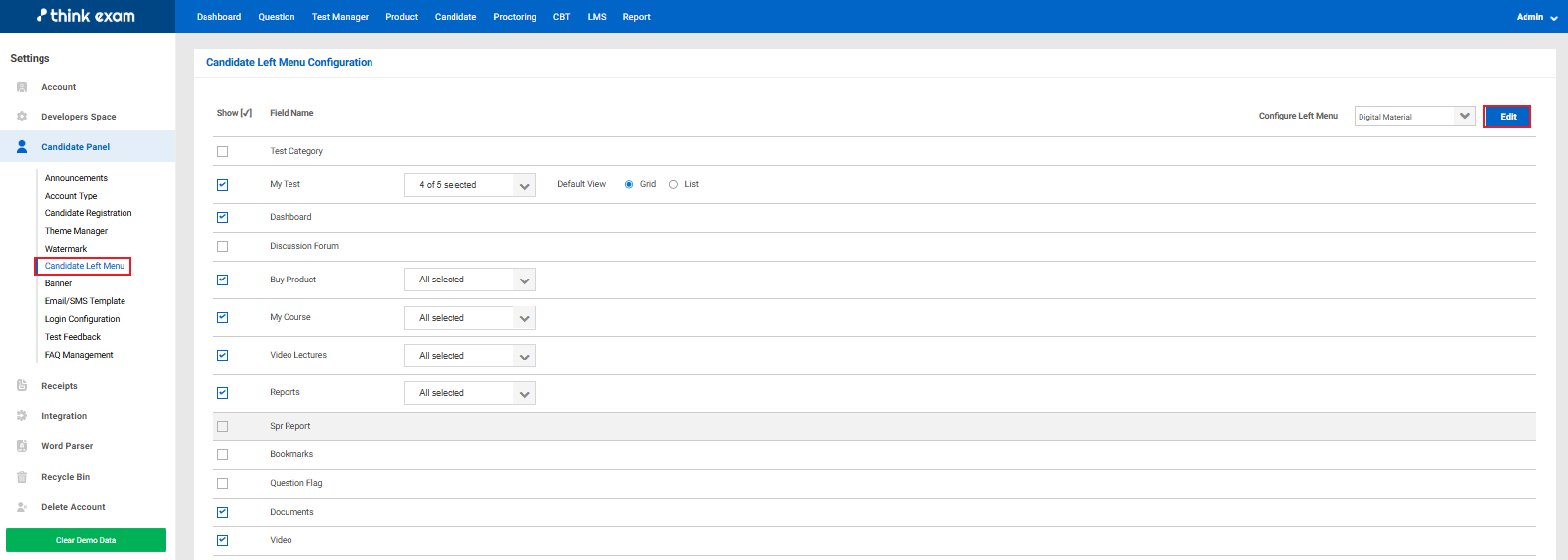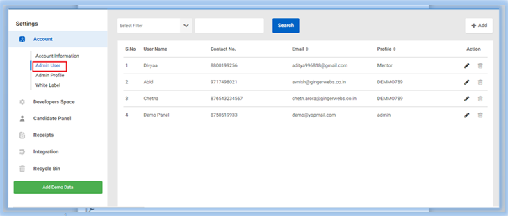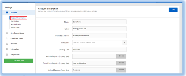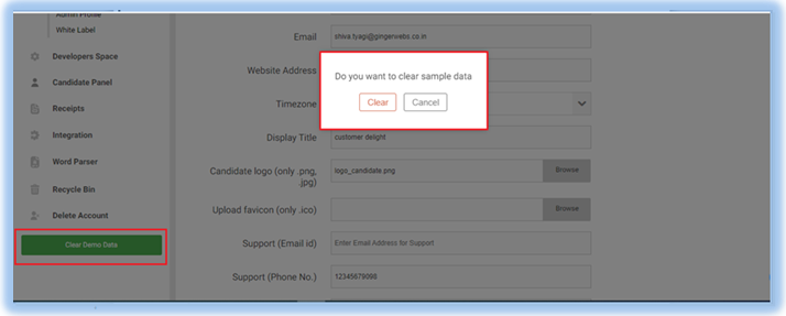Clear Demo Data- Through this, admin can delete the sample data of the portal. Like the total candidates. questions, tests, etc.