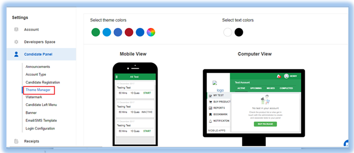 Theme Manager- This section provides option to change text and icon color from black to white and vice-versa whichever is suitable in contrast with the header and footer theme.