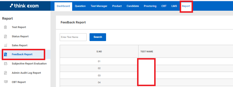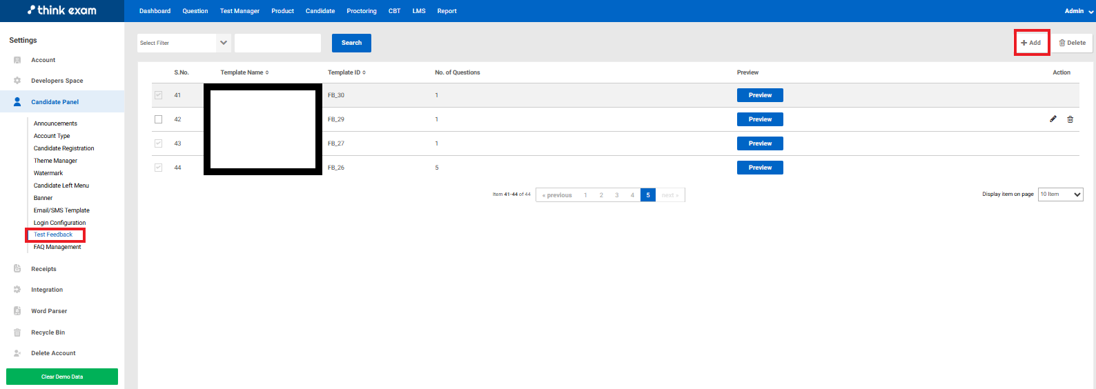 Test Feedback: Admins can create and manage feedback templates from here. You can Add, Preview, Edit and delete the templates as required.