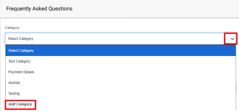 A category is created to organize and bifurcate the FAQs into relevant sections. For example, if you are adding frequently asked questions related to how to start a test, you can create a category named “Test Guide” or something similar.