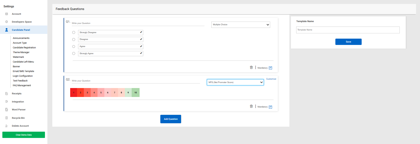 Navigate to Add Button: You can customize the type of questions you want to ask the candidates and save the template.