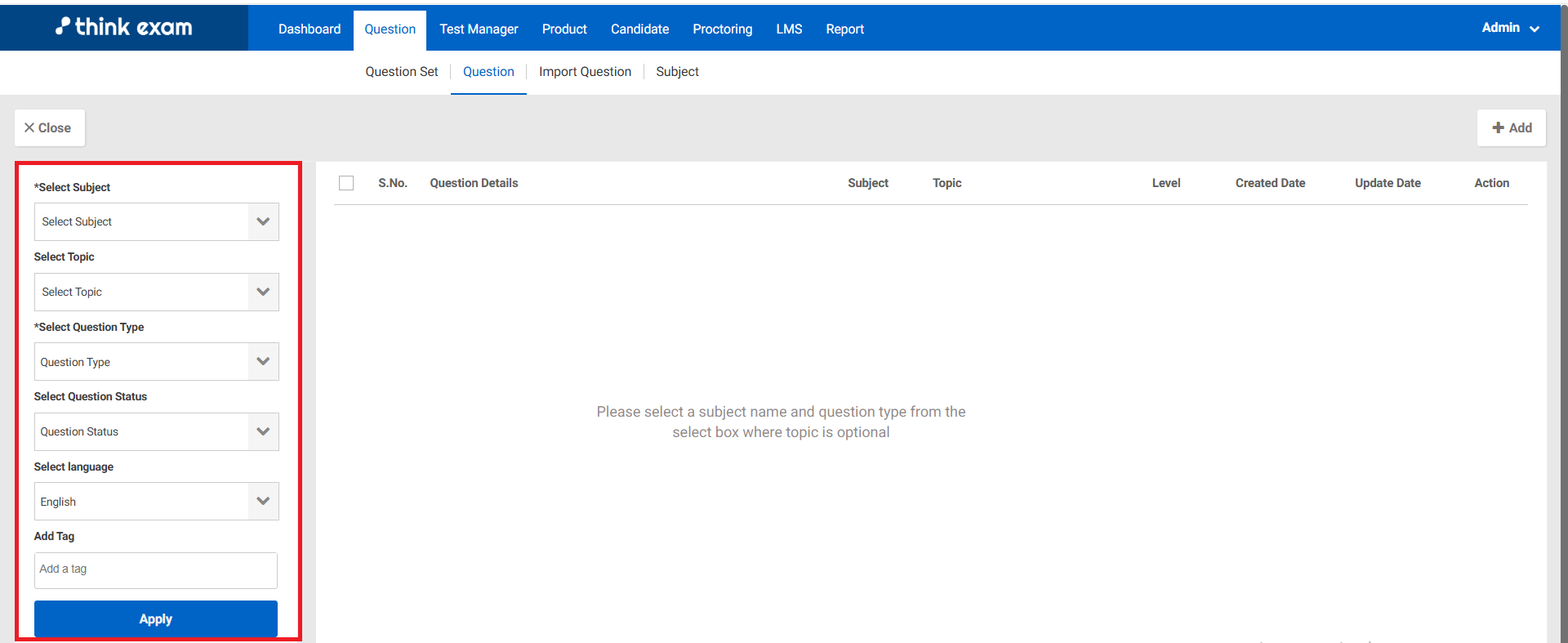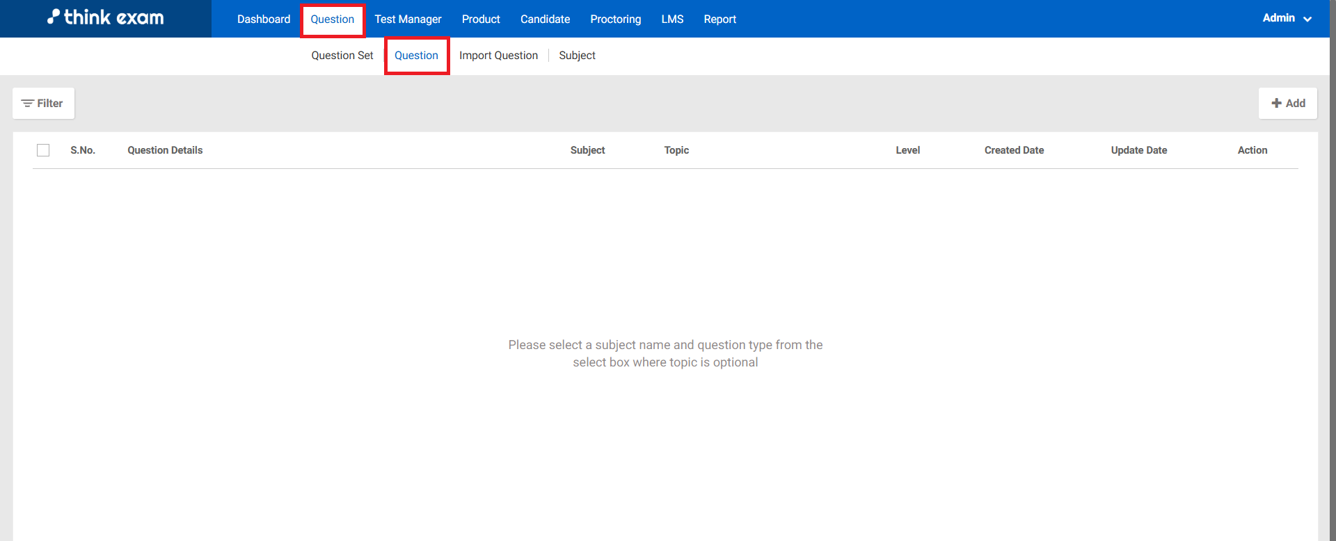 Step 1: Log in to the Admin Panel and navigate to the Question module.