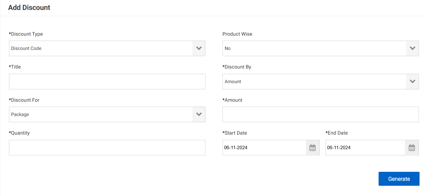 - A page will open, asking you for details such as discount type, title, and more.