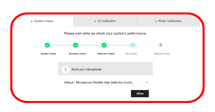 Allow microphone permissions by clicking on "Allow" again. You may have to speak a few words so the system can check your microphone