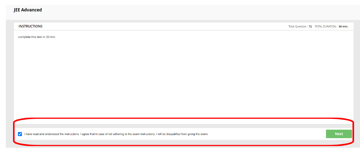 Review and acknowledge the general instructions displayed on your screen, check the box, and then click "Next".