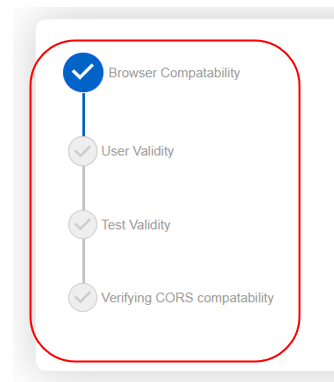 After clicking on the “Start test” button, the system will check for certain parameters such as browser compatibility, test’s validity etc.
