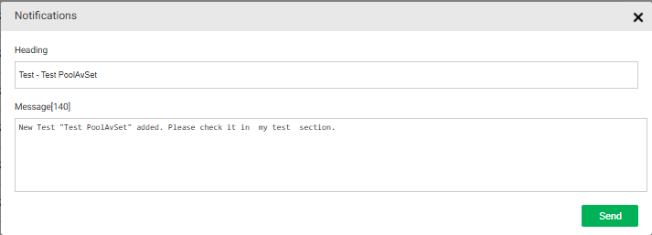 Then a custom message with default name of the test appears. You can edit the Heading and Message: