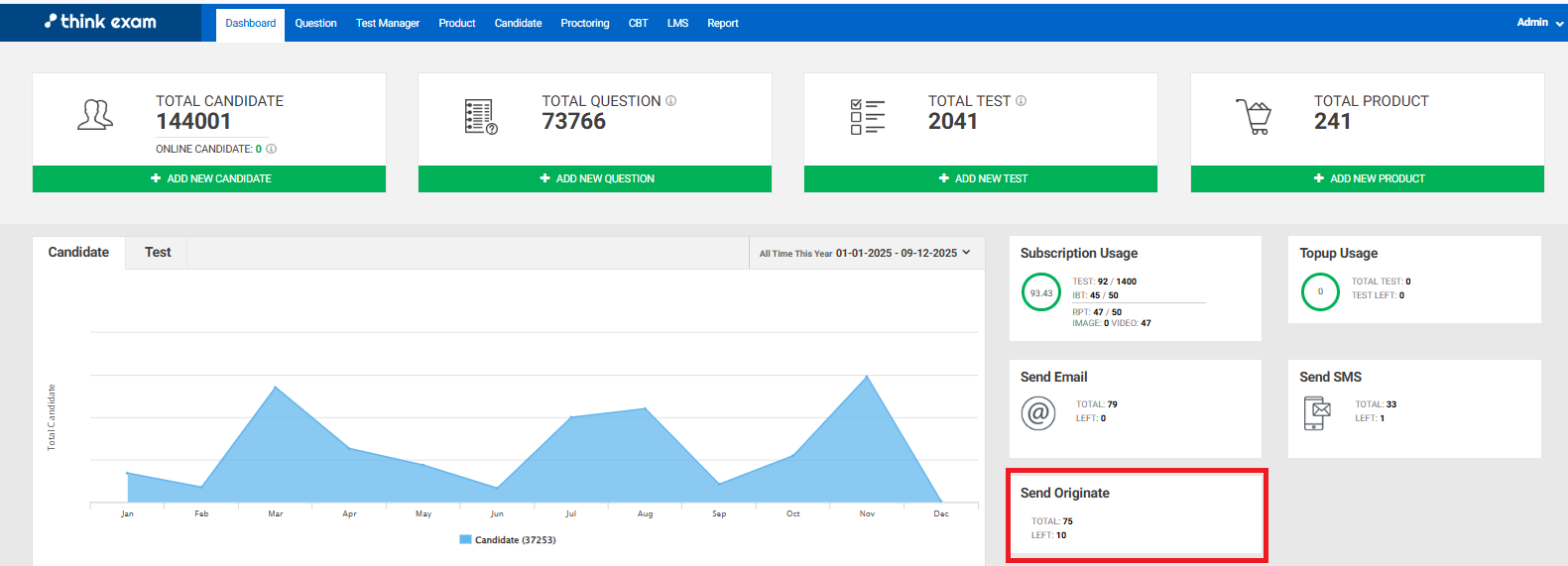 Note: You can view the total count or count left of Originate feature from the Panel's Dashboard.