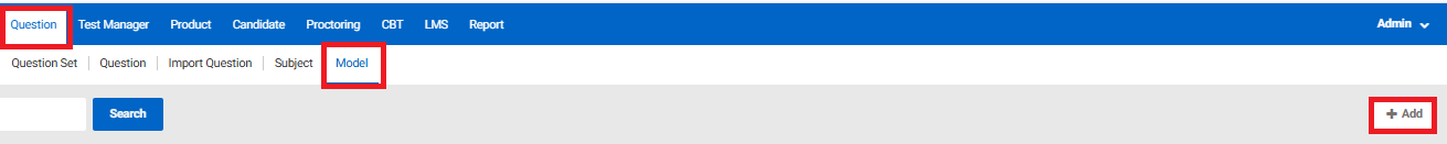 Step 1: To add a Model first, navigate to Question Section and then Model sub-section. Then click on Add button to add a new Model: