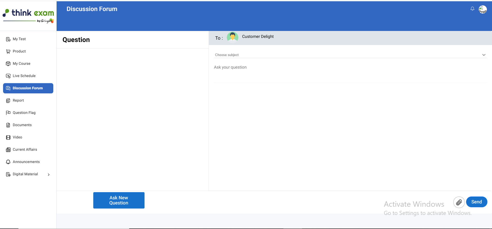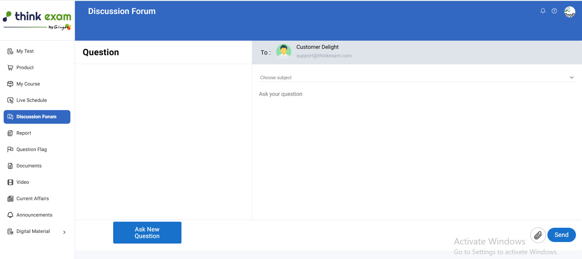 A Discussion Forum in the Think Exam platform is a feature that allows users (such as candidates or learners) to communicate with the instructors by posting questions or issues.