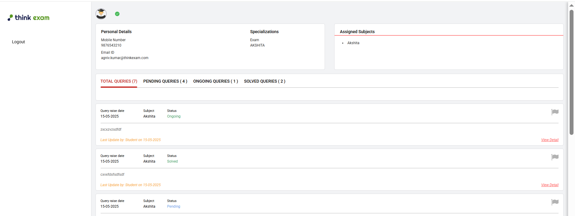 Admins can click on the View Detail option to see the full query and respond to it accordingly.